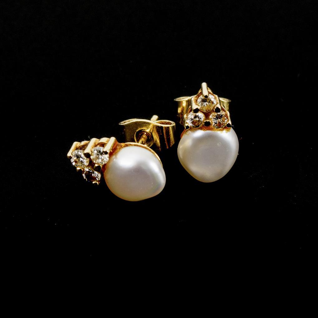 Ohrsteckerpaar mit Zuchtperlen und Brillanten.