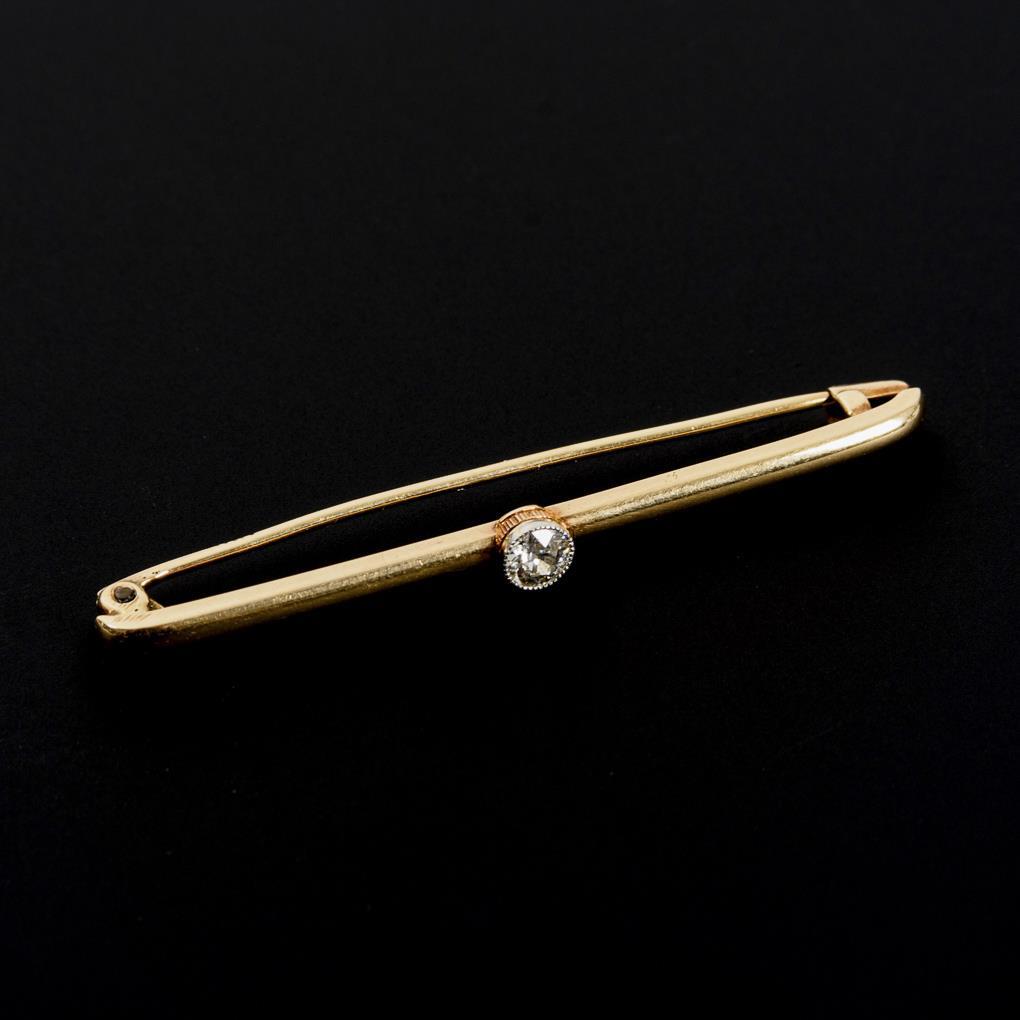 Gelbgold 585 geprüft. Brillant ca. 0,20 ct. Nadel L 5,5 cm. 4,4 g.