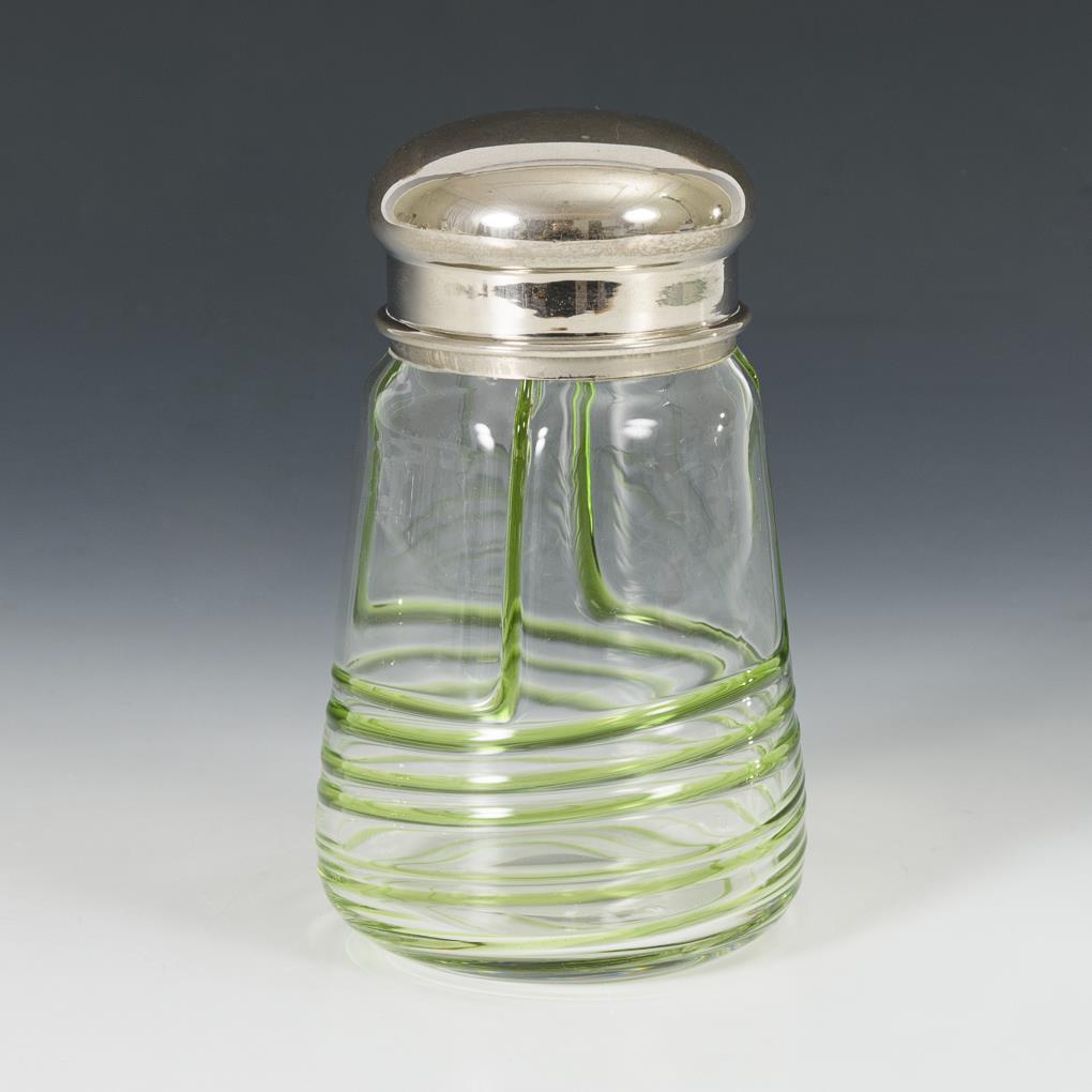 Jugendstil-Glasdose mit Metalldeckel.