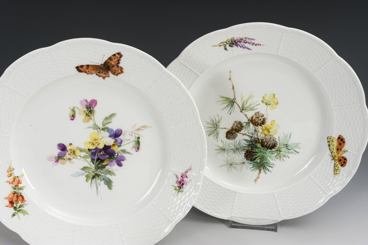 7 Speiseteller mit Weichmalerei. Meissen.