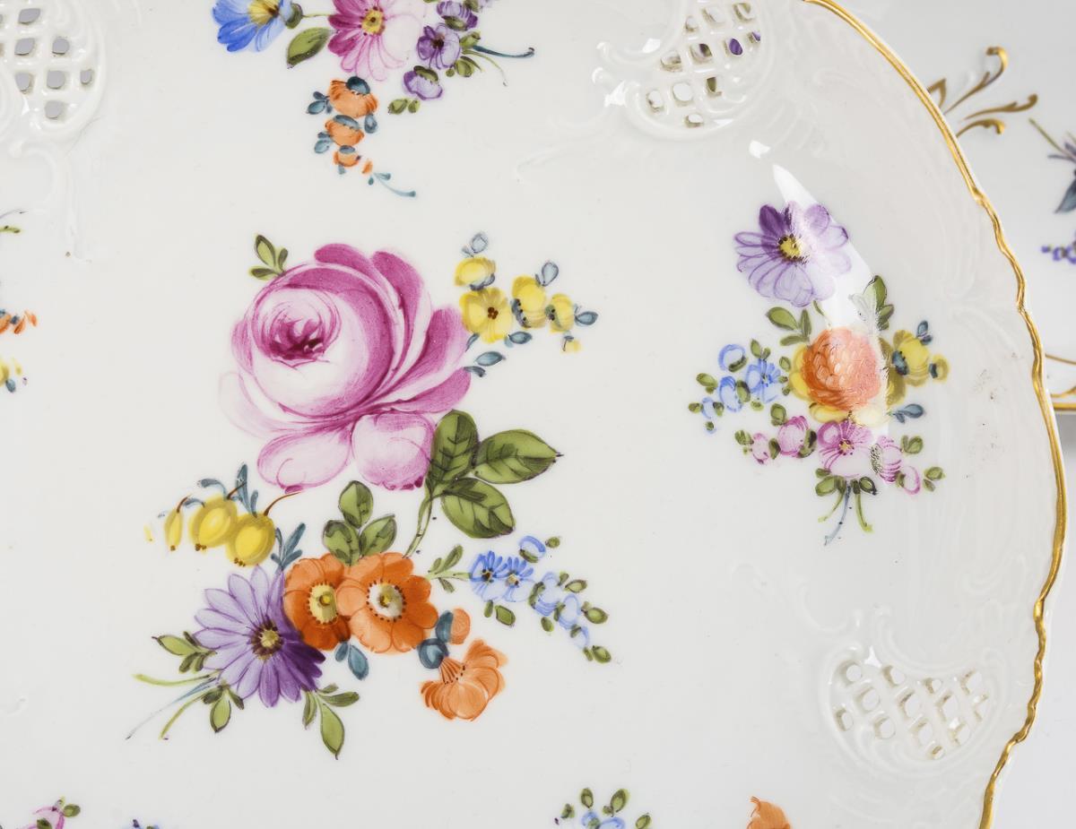2 Schalen mit Durchbruchrand und Blumenmalerei. Nymphenburg.