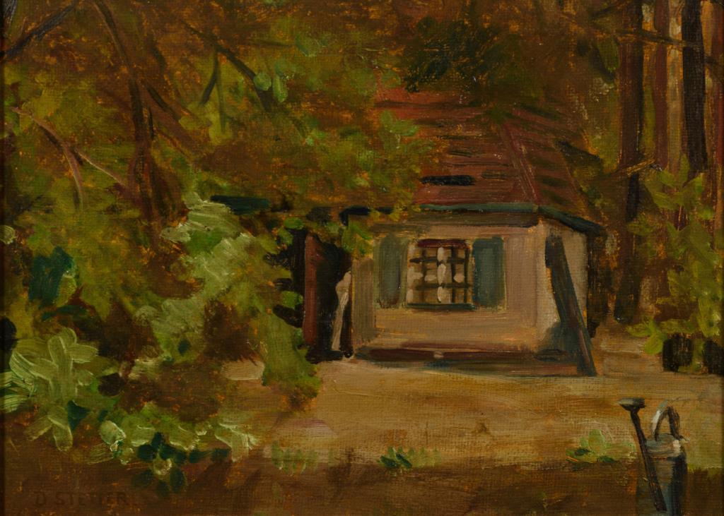 Versteckt zwischen den Bäumen liegende kleine Kate.