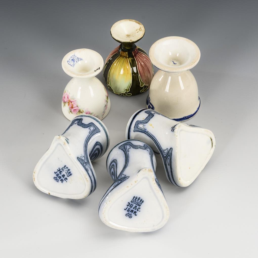 Steingut, teils Umdruckdekor, teils farbig staffiert. H 5,5 bis 6,5 cm.