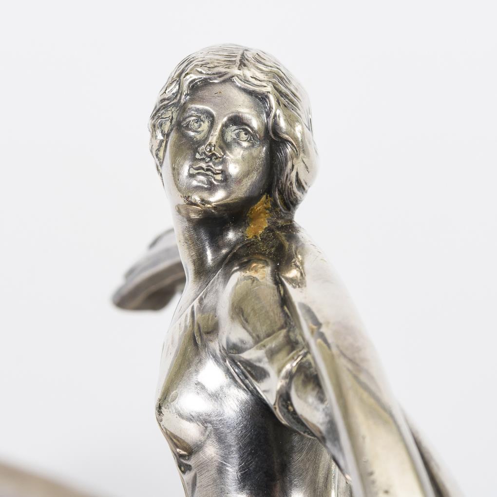 Versilberte Jugendstil-Dreipassschale mit Frauenplastik. WMF.