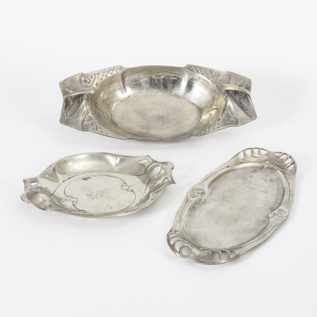 2 Schalen und 1 Tablett Jugendstil-Silberzinn.