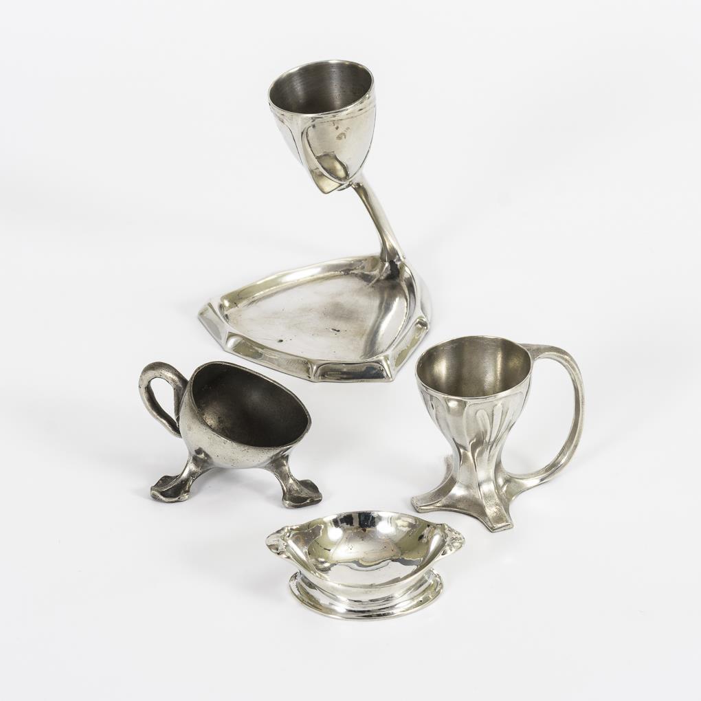 You are here:   Home Categories Metalworks Konvolut Jugendstil-Zinn: 3 Eierbecher und 1 Saliere