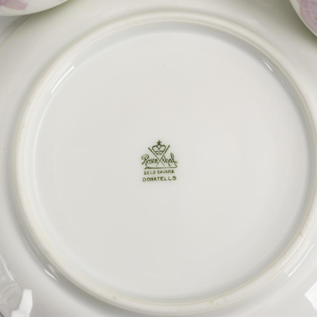 40 Teile. Formentwurf von Günther Reinstein (1880-1938?) und Philipp Rosenthal (1855-1937), 1904. Kaffeekanne (H 24 cm), Teekanne, Milchkännchen, Zuckerdose, 12 Tassen, 12 Untertassen, 11 Kuchenteller und 1 Kredenzteller. Einige Kuchenteller mit Gebrauchsspuren.