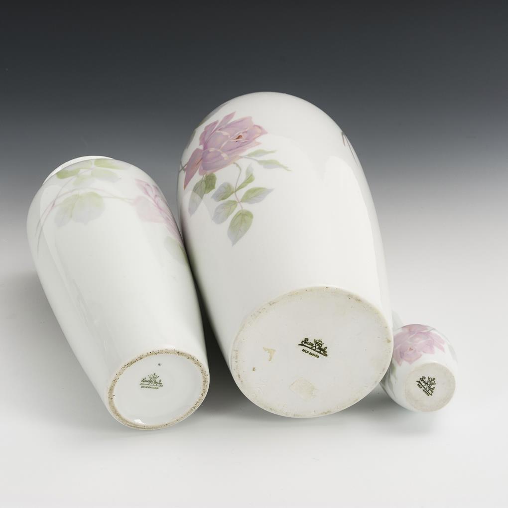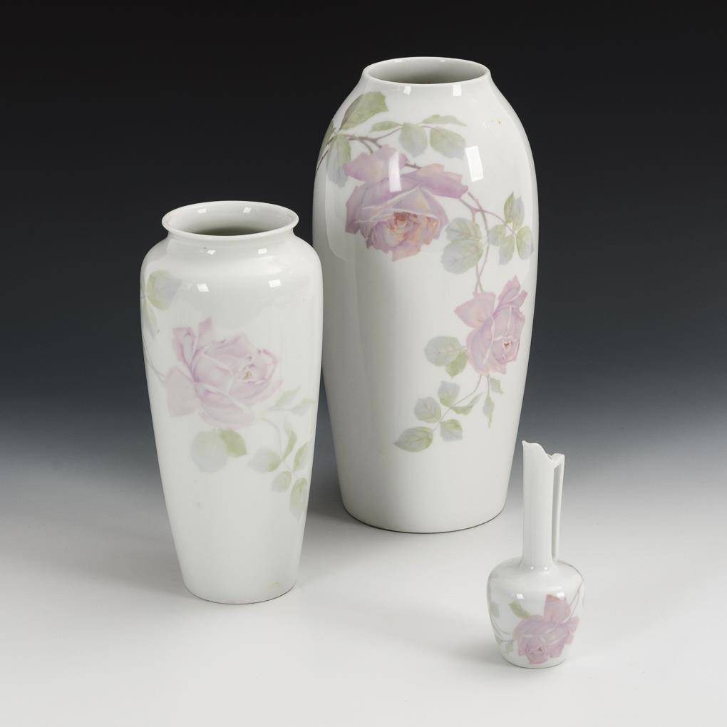 Formentwurf von Günther Reinstein (1880-1938?) und Philipp Rosenthal (1855-1937). 2 verschiedene Balustervasen (H 23 und 29 cm) und kleine Enghalsvase (H 13,5 cm).