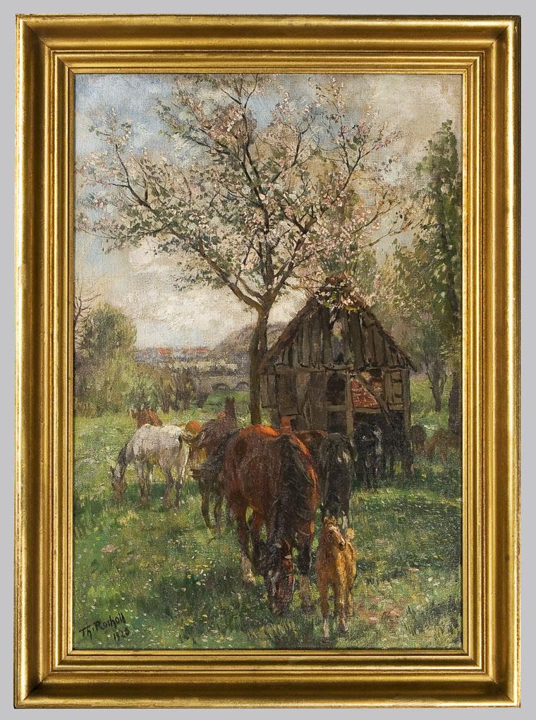 Rocholl, Tier,- Schlachten- und Landschaftsmaler, Grafiker, Zeichner, Schriftsteller. Studierte an den Akademien in Dresden, München und Düsseldorf. 1880 mit eigenem Atelier Meisterschüler von Wilhelm Sohn. Als Kriegsmaler an sechs Fronten tätig. Erhielt diverse Auszeichnungen. Ein Werkverzeichnis wird seit 1980 fortlaufend bis heute mit über Tausend Werken im Museum von Hofgeismar erarbeitet * Partnerauktion Bergmann.