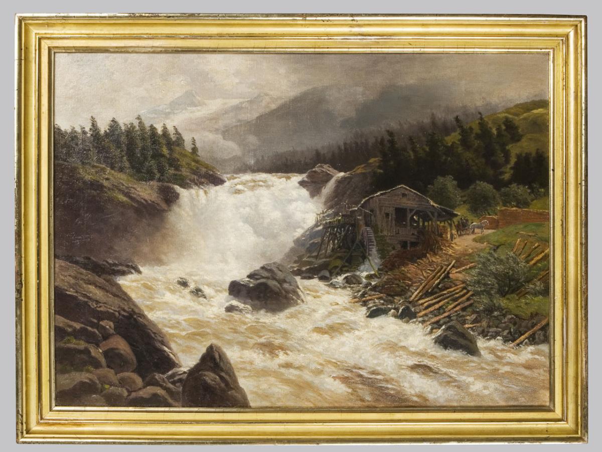 Rückseitig auf dem originalen Keilrahmen alt bezeichnet. Profilierter Waschgoldrahmen.