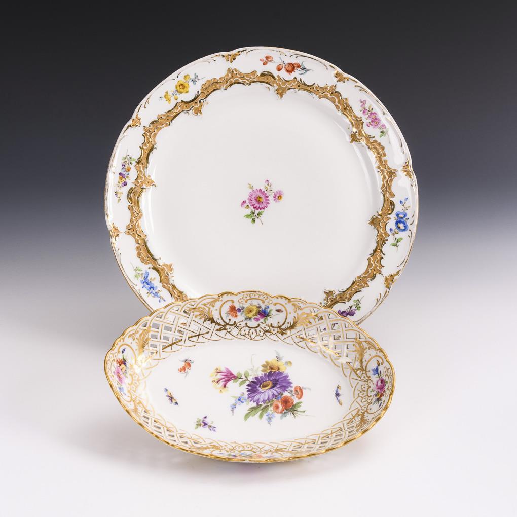 Kuchenteller und Durchbruchschale mit Blumenmalerei. Meissen.