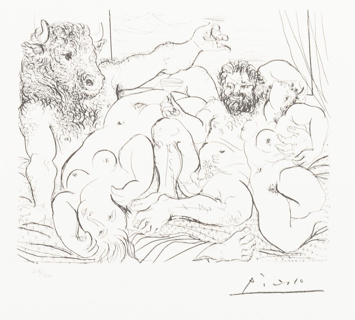 Blatt 5, 81 und 85 aus "Suite Vollard" - Blatt V "Homme dévoilant une femme", Exemplar: 221/1200 | Blatt LXXXI "Sculpteur et Trois Danseuses", Exemplar: 470/1200 | Blatt LXXXV "Scene Bachique au Minotaur", Exemplar: 218/1200.