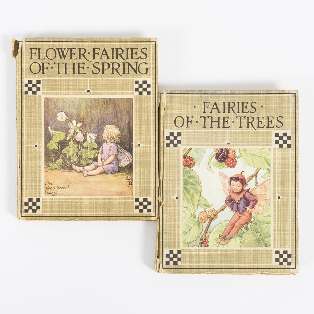 "Flower Fairies of the Spring" / "Fairies of the Tree". Gedichte in englischer Sprache zu bestimmten Pflanzen, mit farbigen Feenmotiven. Rücken defekt.