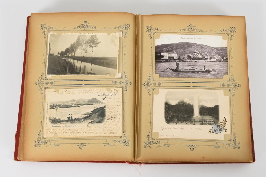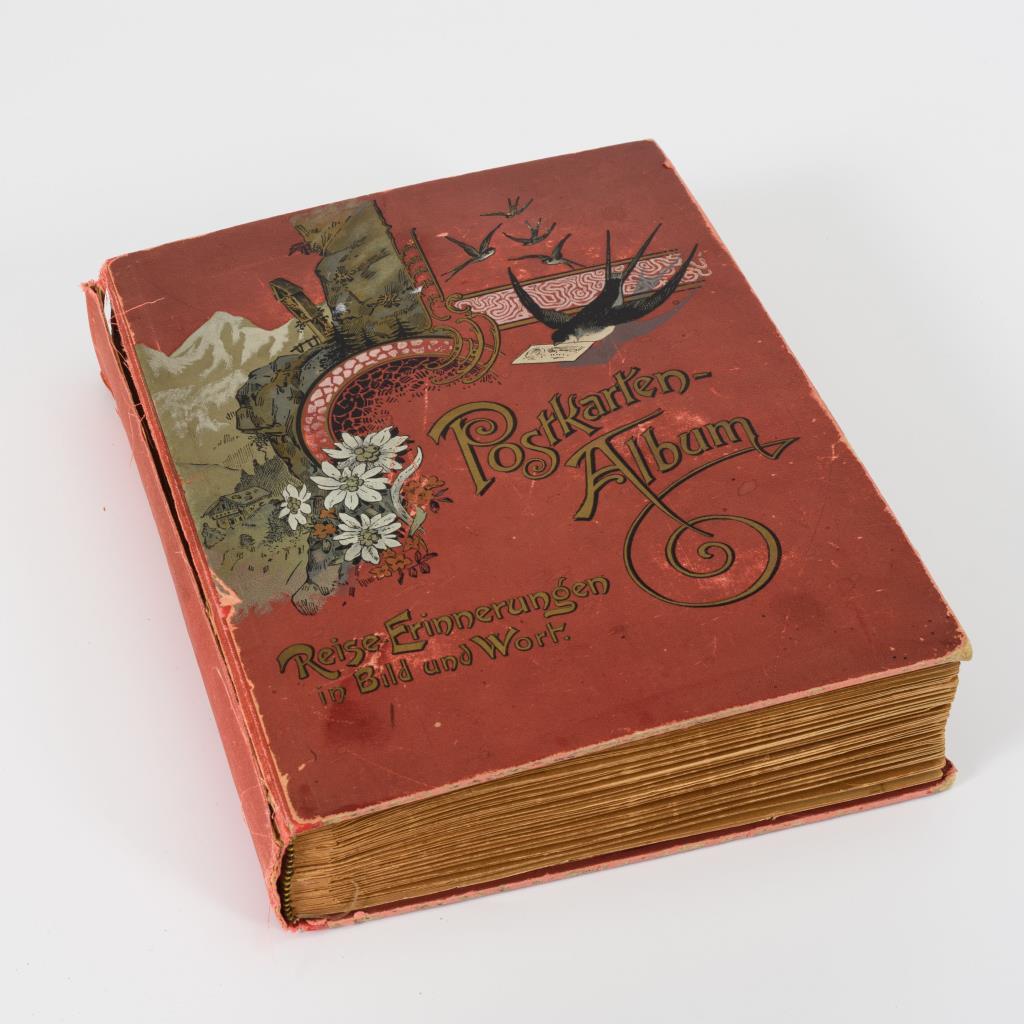 Rotes "Postkarten-Album", "Reise-Erinnerungen in Bild und Wort".