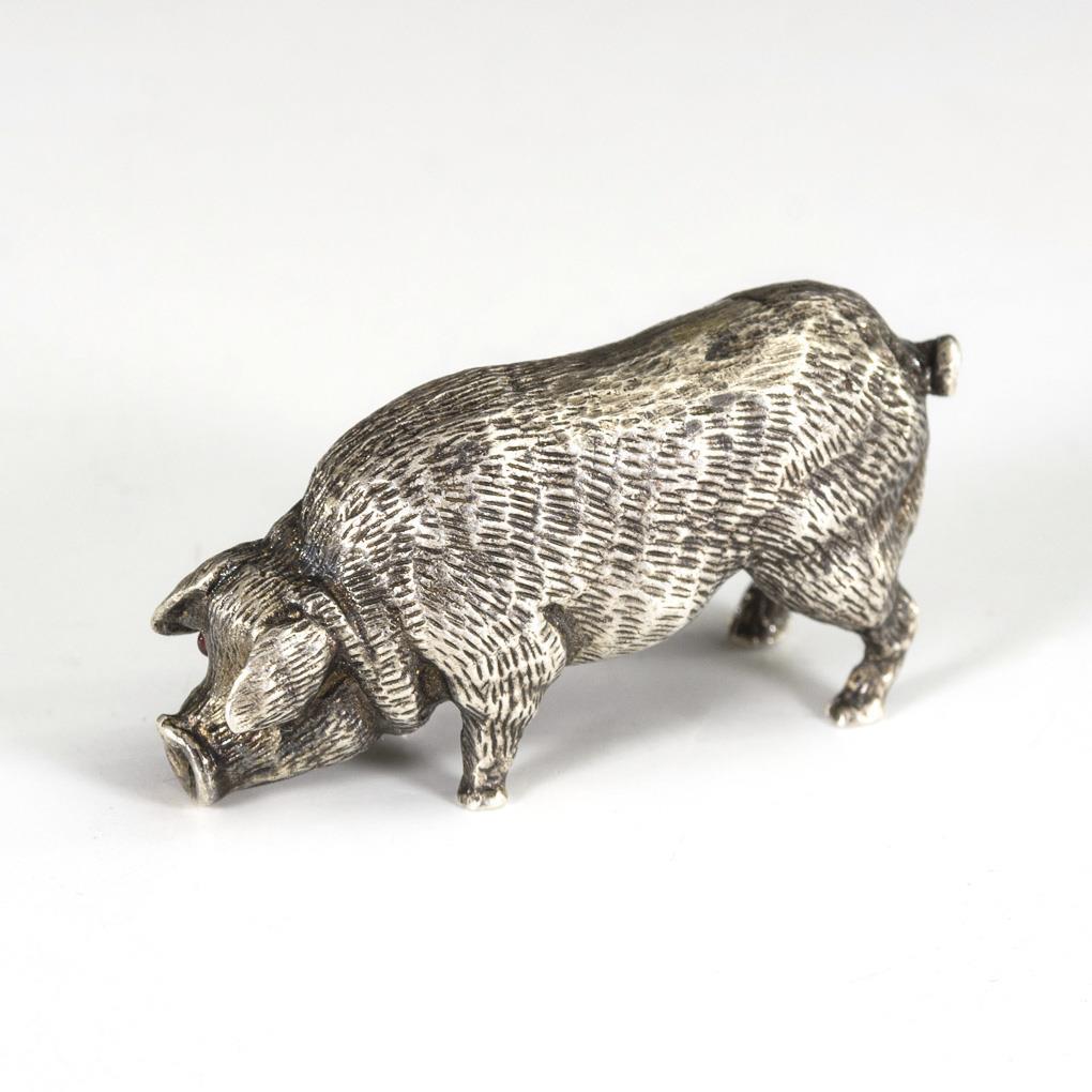 Silbernes Miniatur-Schweinchen. Julius A. Rappoport, für Carl FABERGÉ.