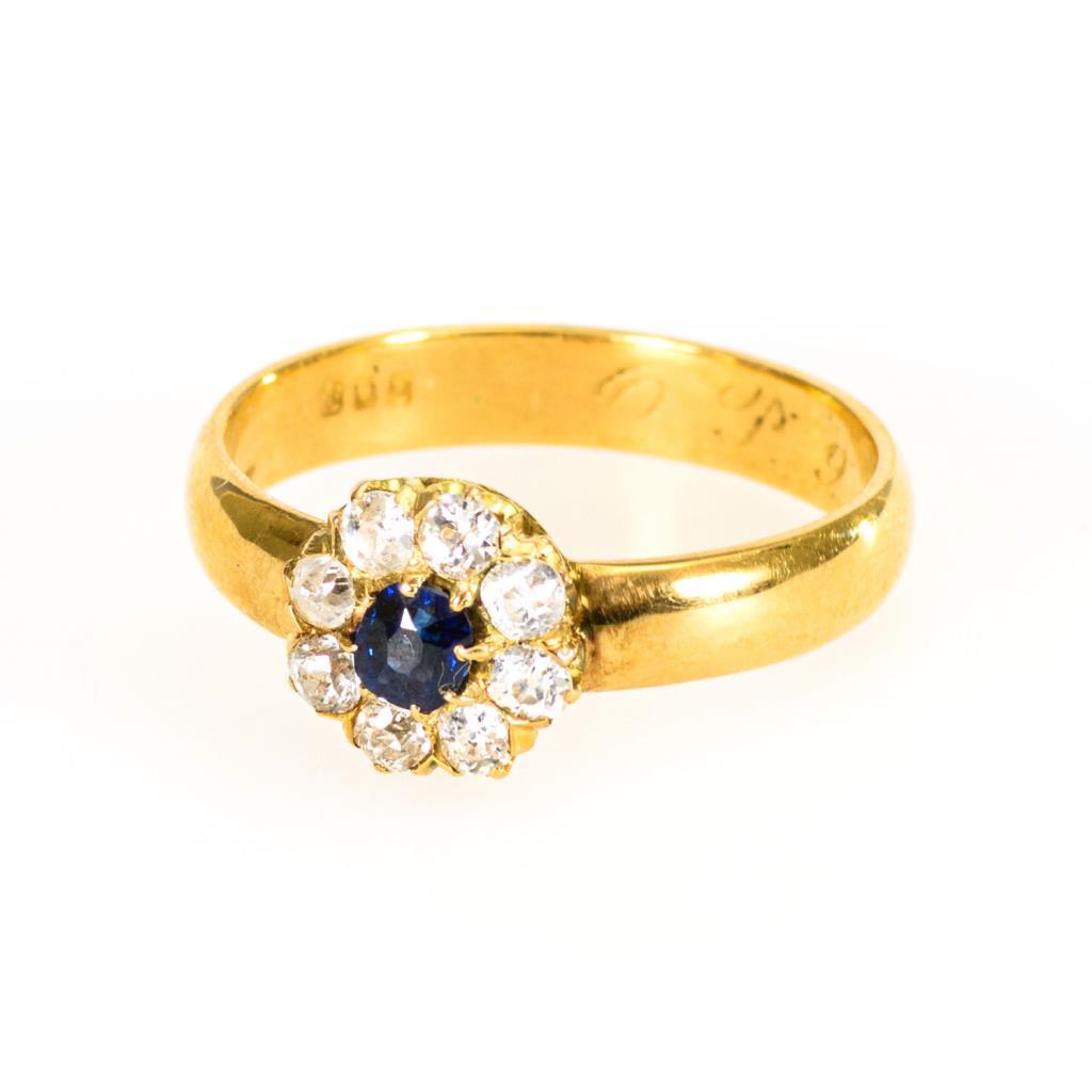 Klassischer Ring mit Saphir und Altschliff-Diamanten