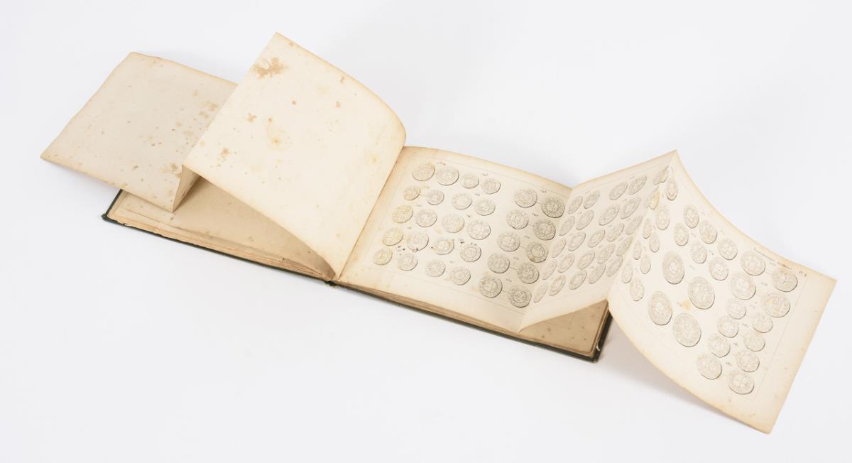 12 und 12 Tafeln mit zahlreichen Abbildungen alter Münzen (wohl römischer und griechischer Münzen sowie Frankenreich). Leineneinband. Etwas stockfleckig.