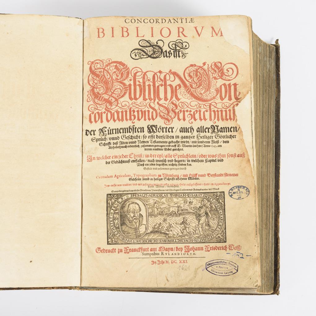 "Das ist die Biblische Concordantz und Verzeichnuß der Fürnembsten Wörter, auch aller Namen, Sprüche und Geschicht ... dem Alphabet nach ordentlich zusammen getragen ...".