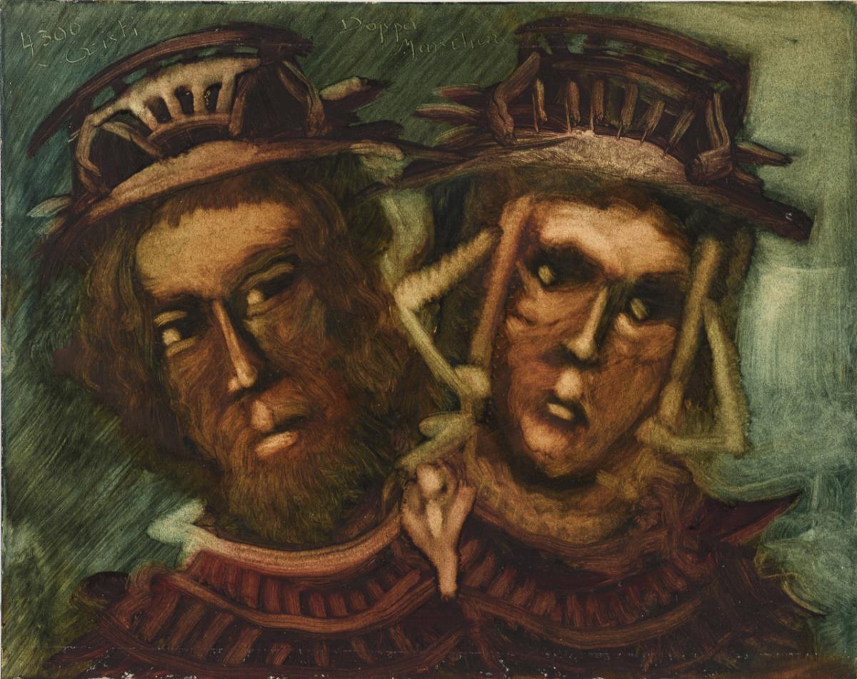 Bildnis eines Mannes und einer Frau vor grünlichem Hintergrund.