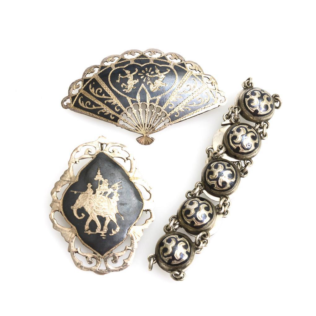 3 Teile Niello-Schmuck.
