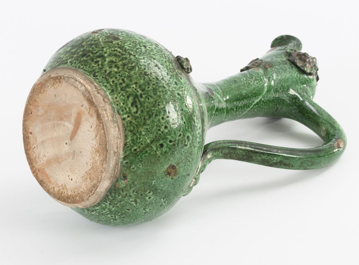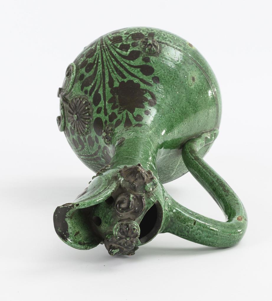 Helles Steinzeug, grün glasiert, schwarz bemalt. H 38,5 cm.