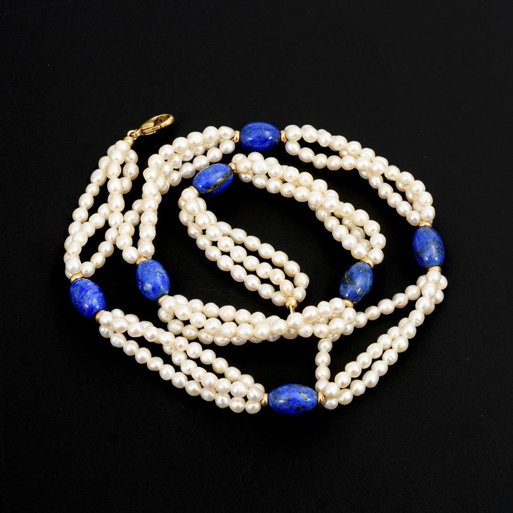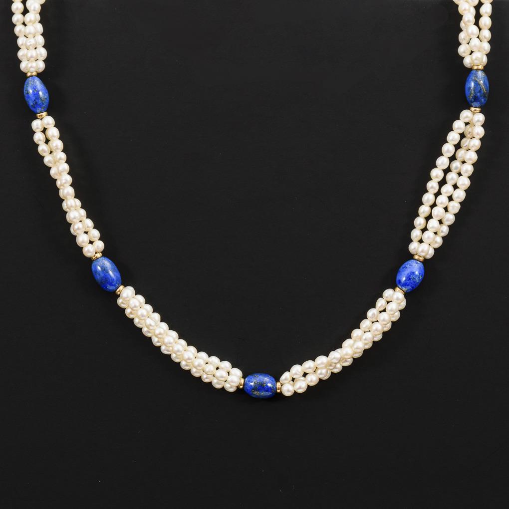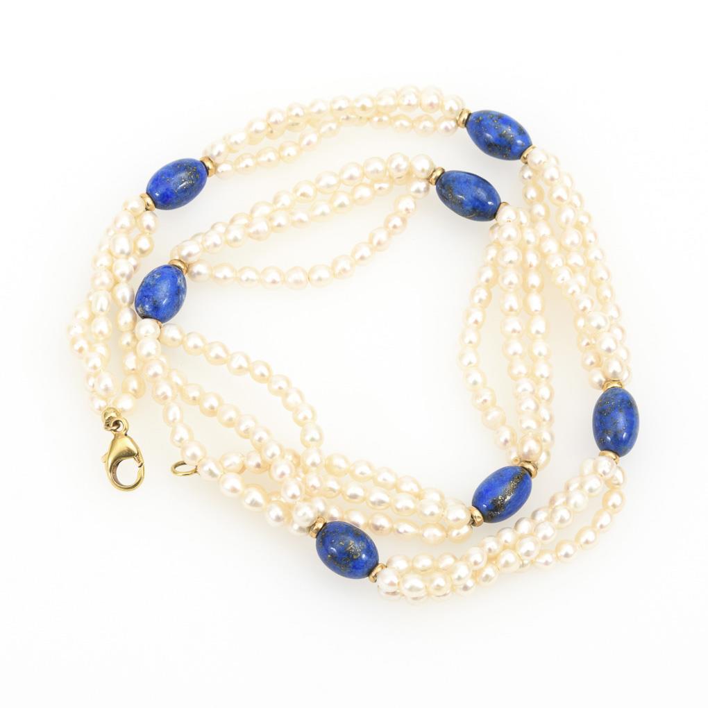 3-reihige Zuchtperlenkette mit Lapislazulis.