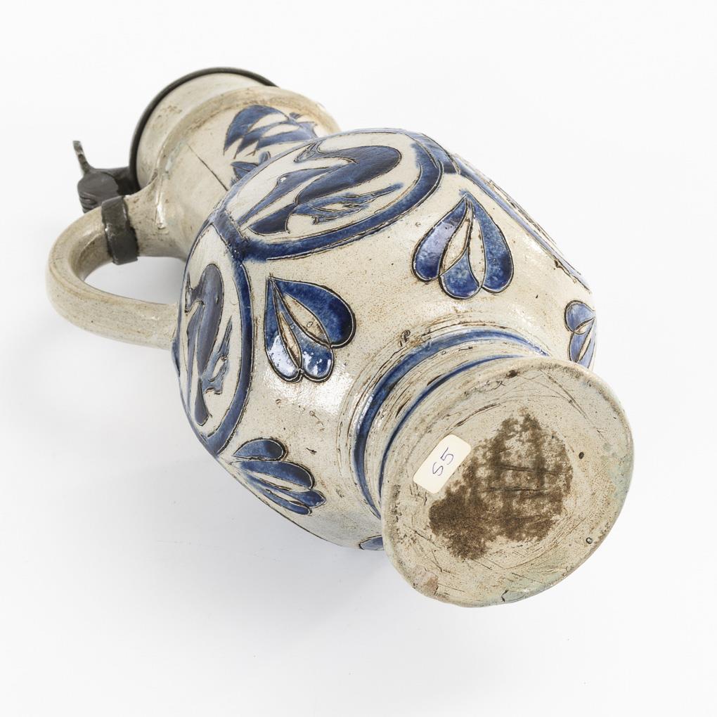Enghalskanne mit Vögeln und Blumen. Westerwald/Hessen.