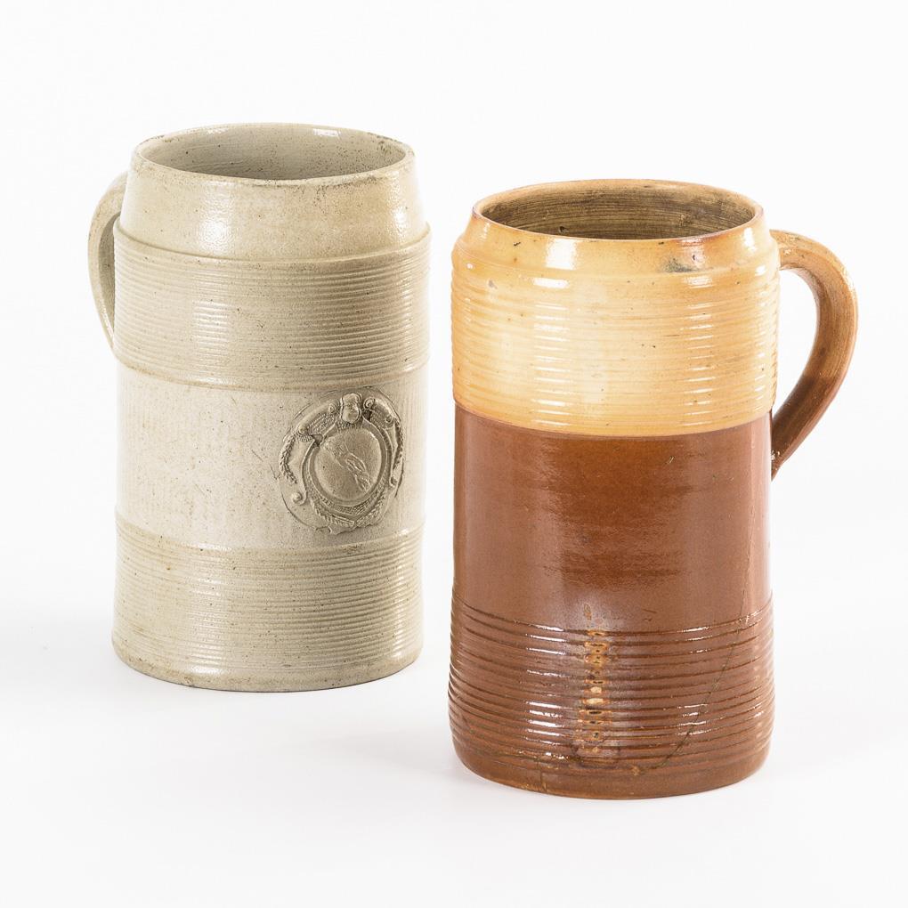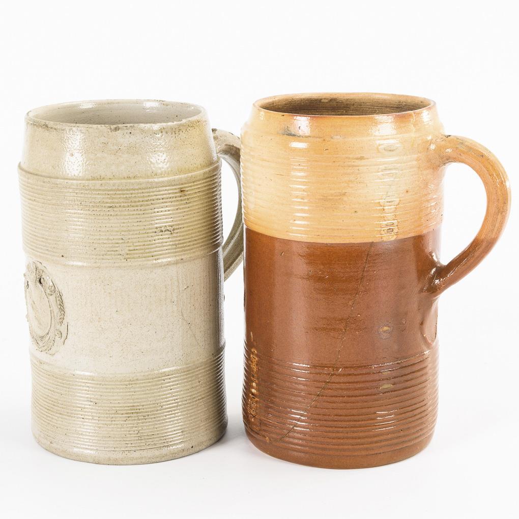 2 barocke Steinzeug-Krüge. Rochlitz-Lunzenau, Altenburg.