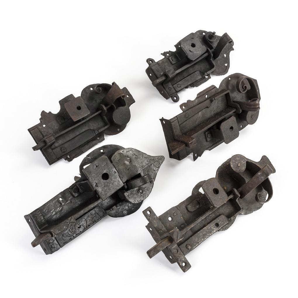 Je mit Zughaken und Schrägriegel, 1x mit Einhaue, 1x ohne Eingericht. Alters-/Gebrauchsspuren, teils repariert, je ohne Schlüssel.
