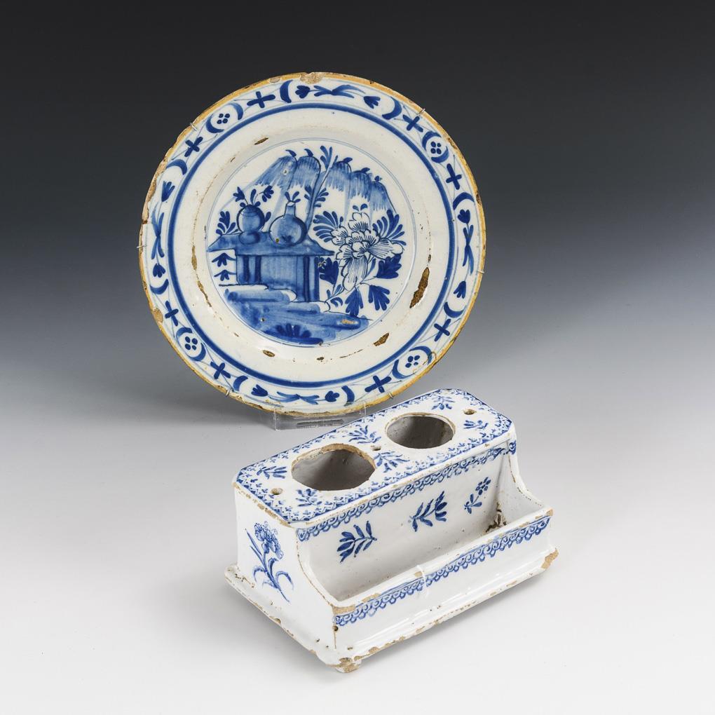 You are here:   Home Categories Ceramics Fayence-Schreibzeug und Teller mit Blaumalerei