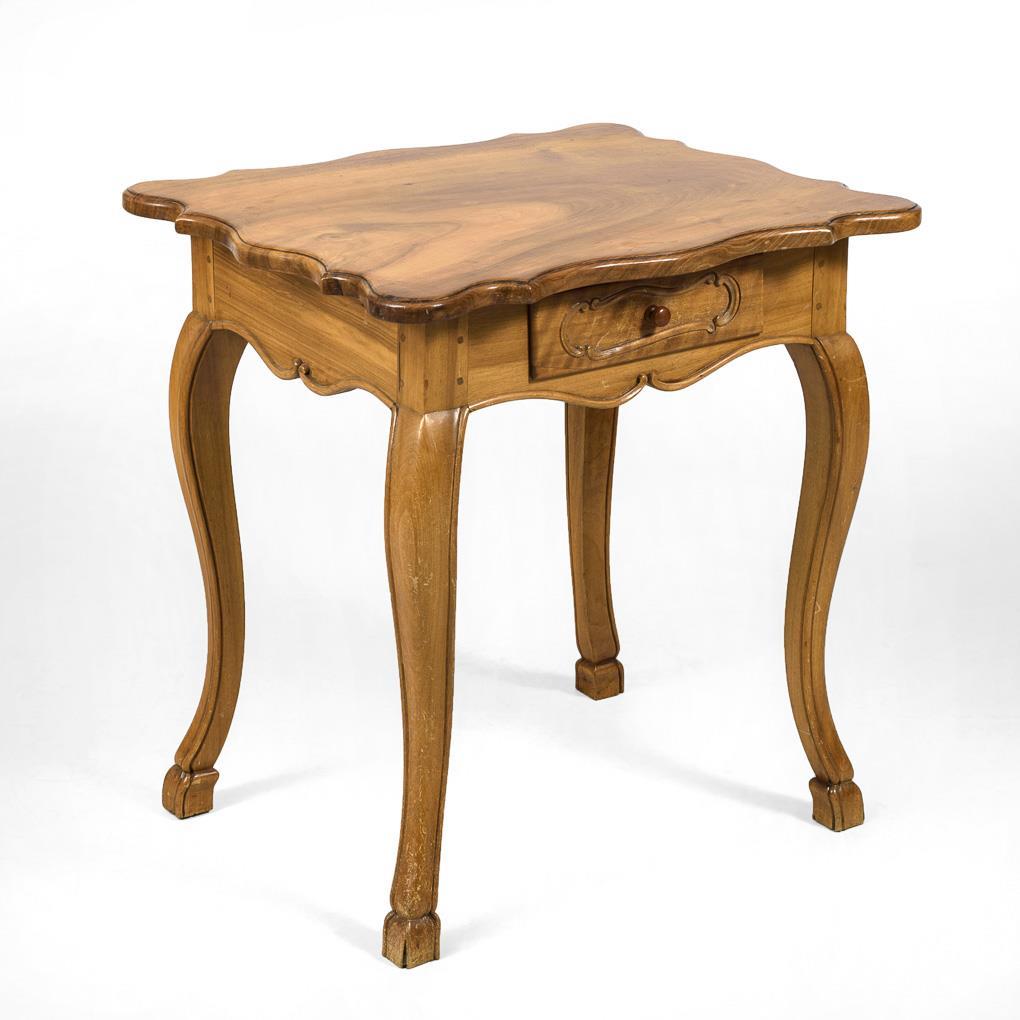 Kleiner Salontisch in barocker Formensprache, mit geschweifter Zarge und Zargenschub. Alters-/Gebrauchsspuren.