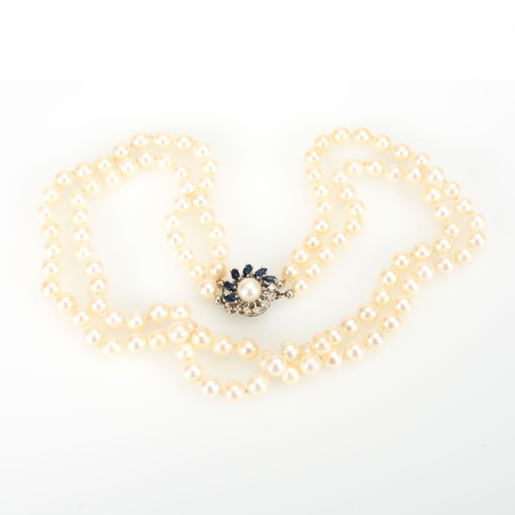 Zweireihige Perlenkette mit Saphiren und Diamanten