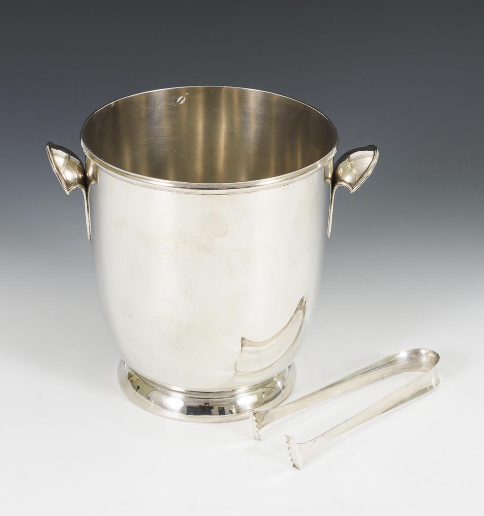 Silberner Sektkühler mit Eiszange. Boggiali, Milano.
