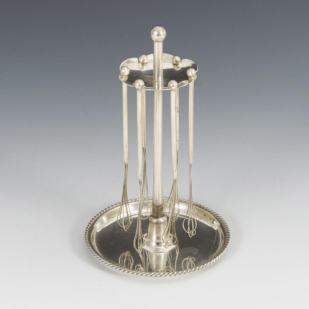 Ständer mit Kordelkante und 6 eingehängten Quirlen. Gebrauchsspuren, teils etwas verbogen.