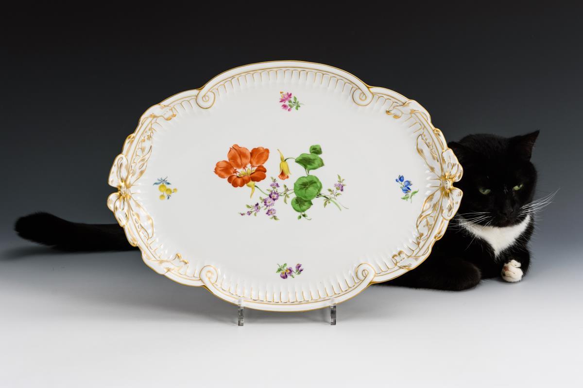 Ovale Form mit Schleifenhandhaben, im Spiegel Blumenmalerei mit Kapunzinerkresse.