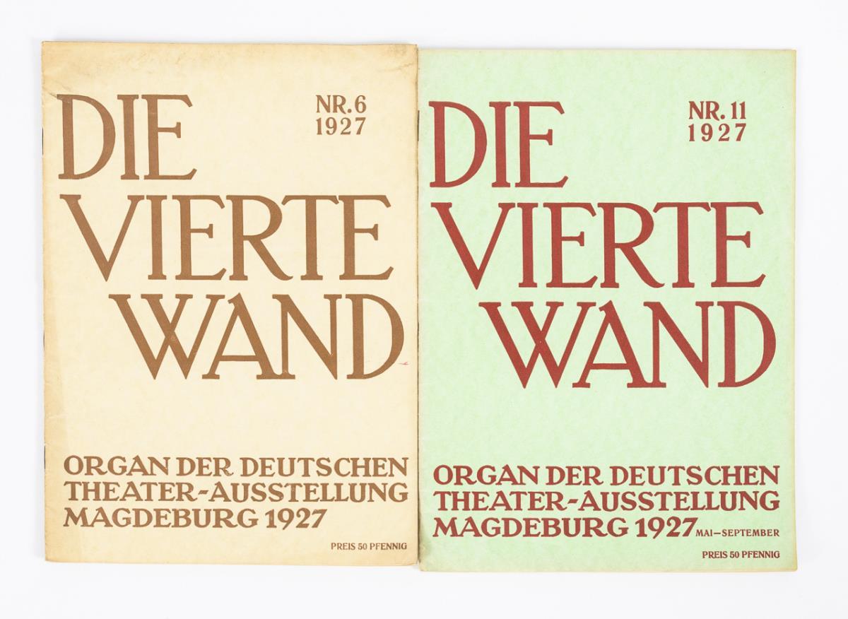 Mit Artikeln von Heinrich Erbprinz zu Reuß, Rudolf Laban, Gustav Grund und Entwurfszeichnung von Albin Müller. Nr. 6 und 11 von 1927 und Festnummer. 17, 19 und 98 Seiten.