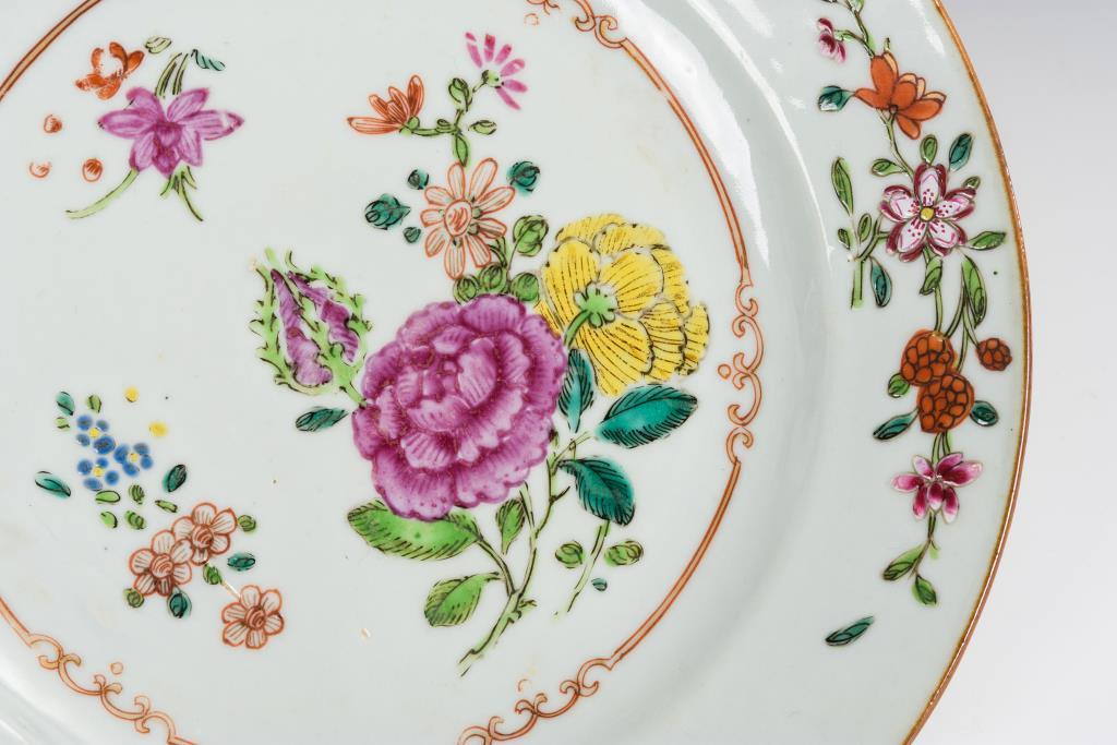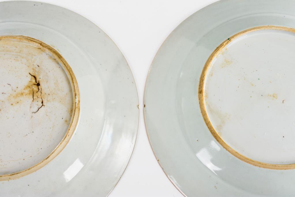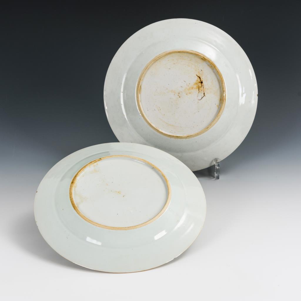 Porzellan, mit Emailfarben polychrom bemalt.Durchmesser 22,5 und 23 cm.