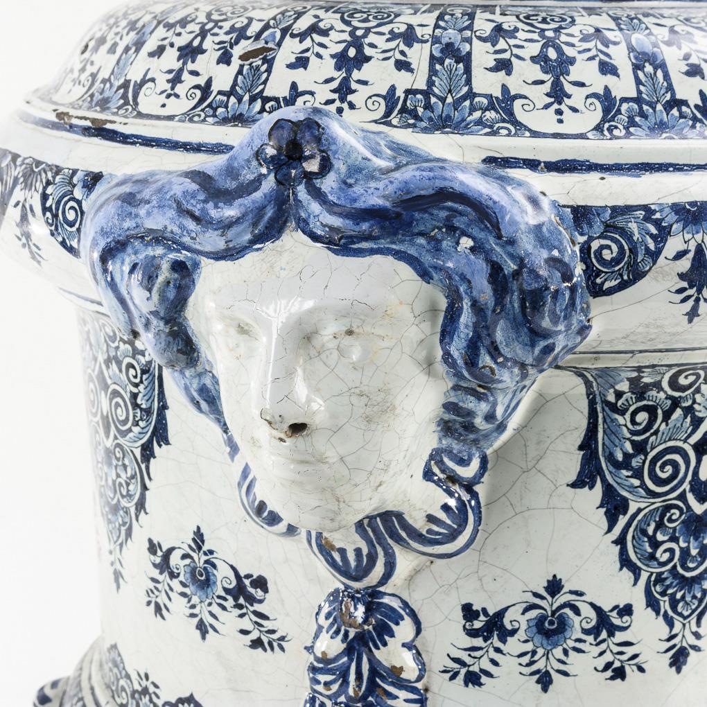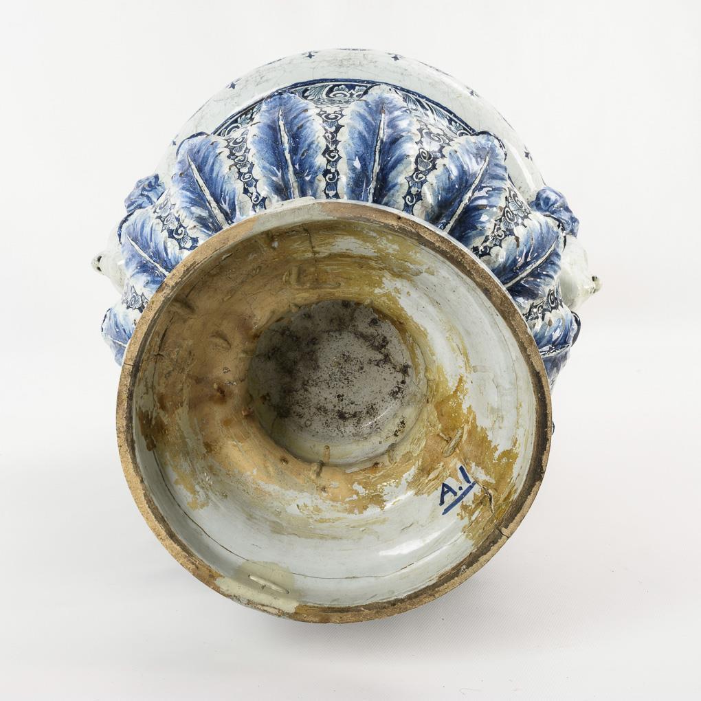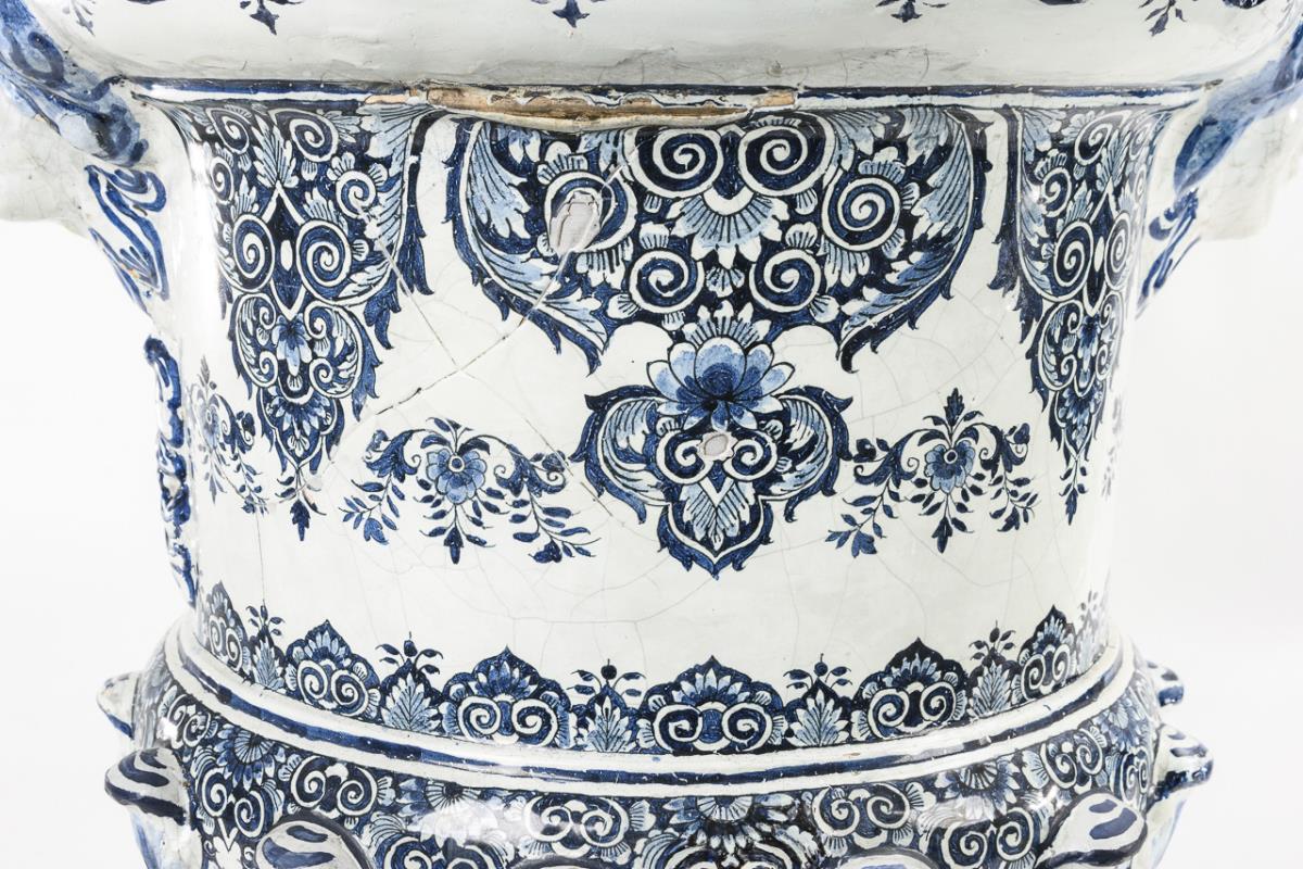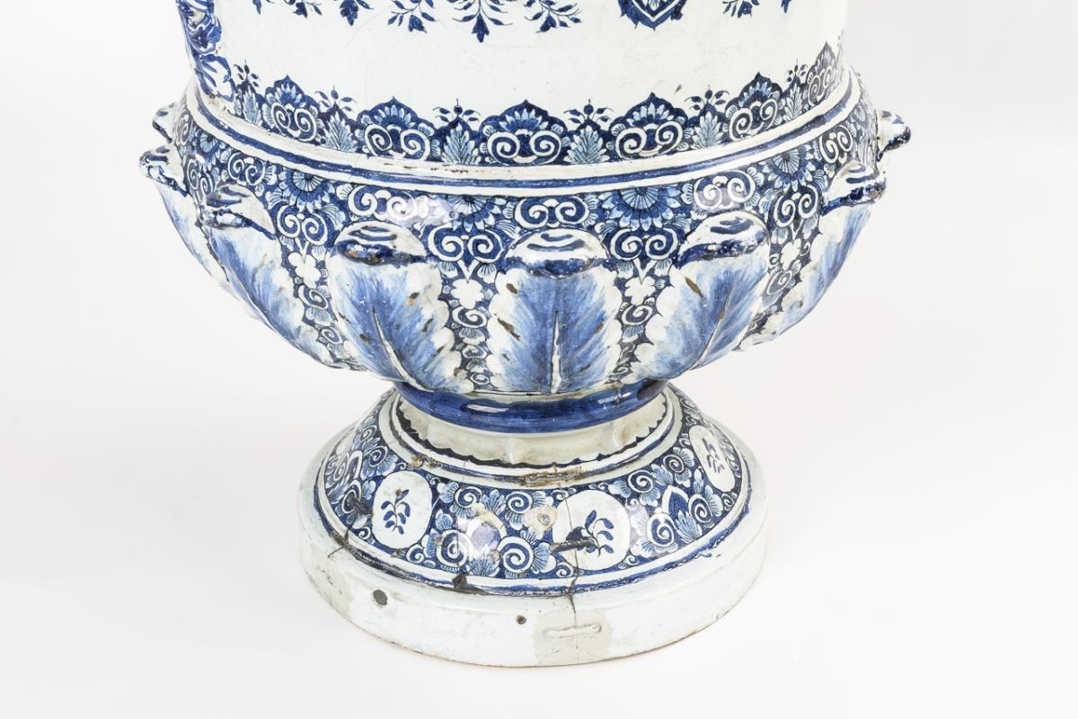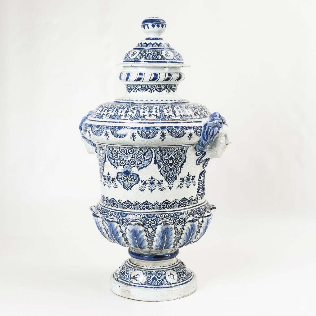 Außergewöhnlich große Fayence-Deckelvase mit Floraldekor.