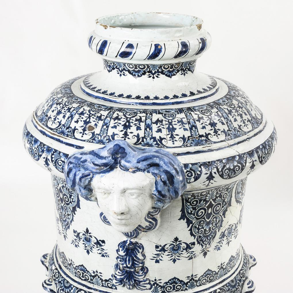 Kleisterblau glasiert, blau bemalt. H 86 cm.