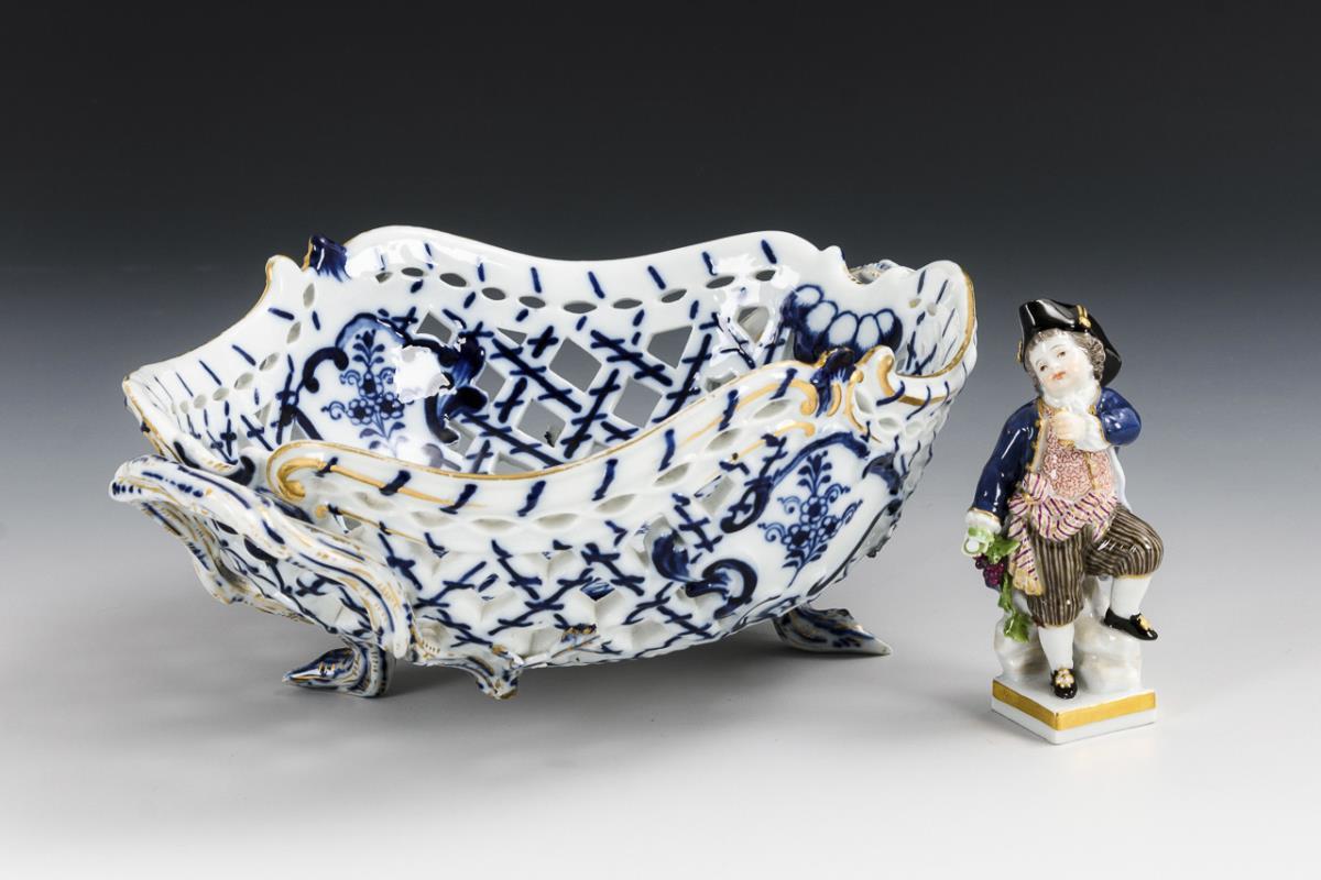 Zwiebelmuster-Durchbruchkorb und Winzerkind. Meissen.