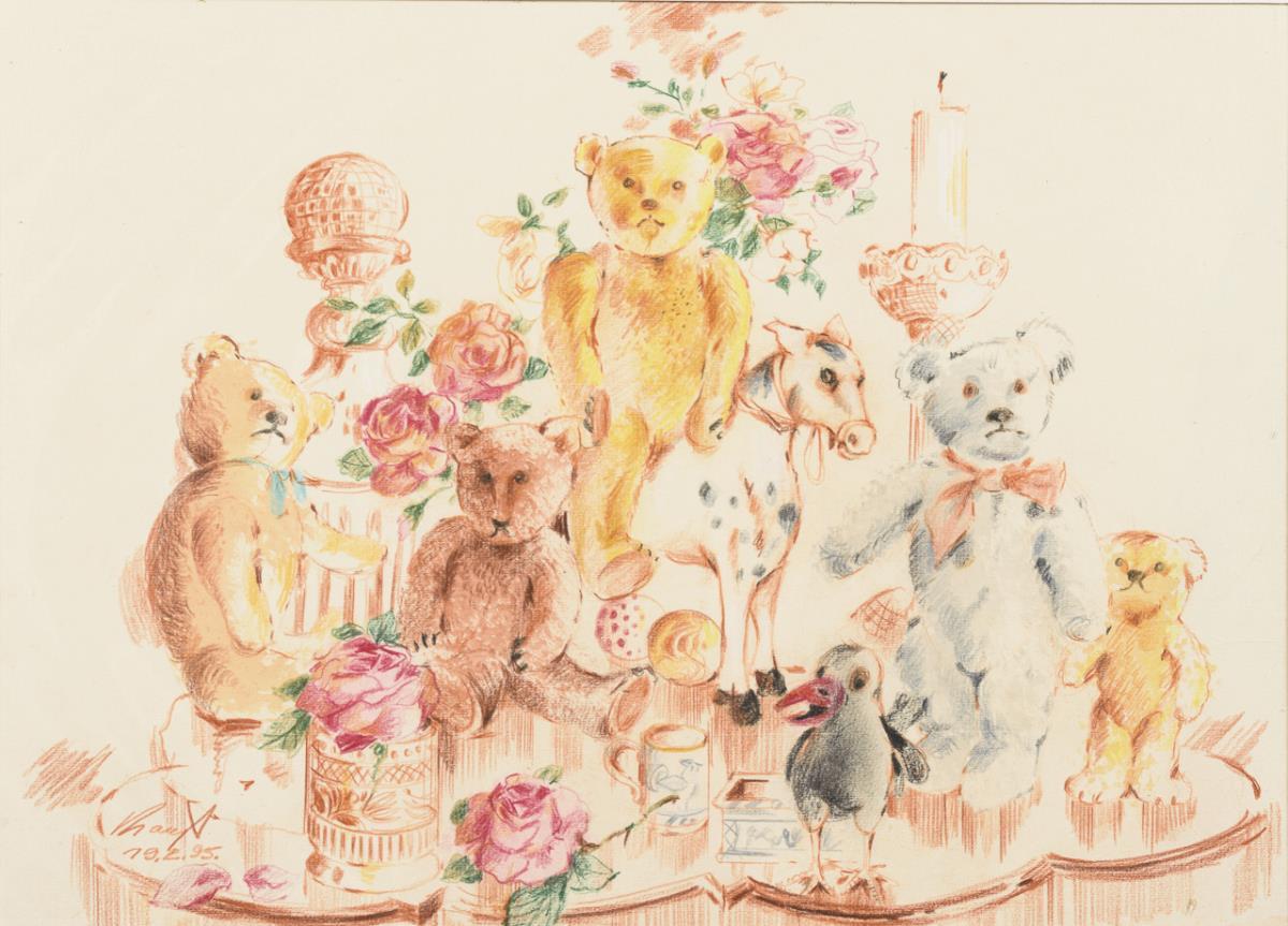 Je Pastell. Links unten signiert, dreimal rechts unten signiert, mittig unten signiert. Datiert: 4.2.(19)85, 24.1.(19)95, 19.2.(19)95, 7.2.(19)95, 6.2.(19)95.