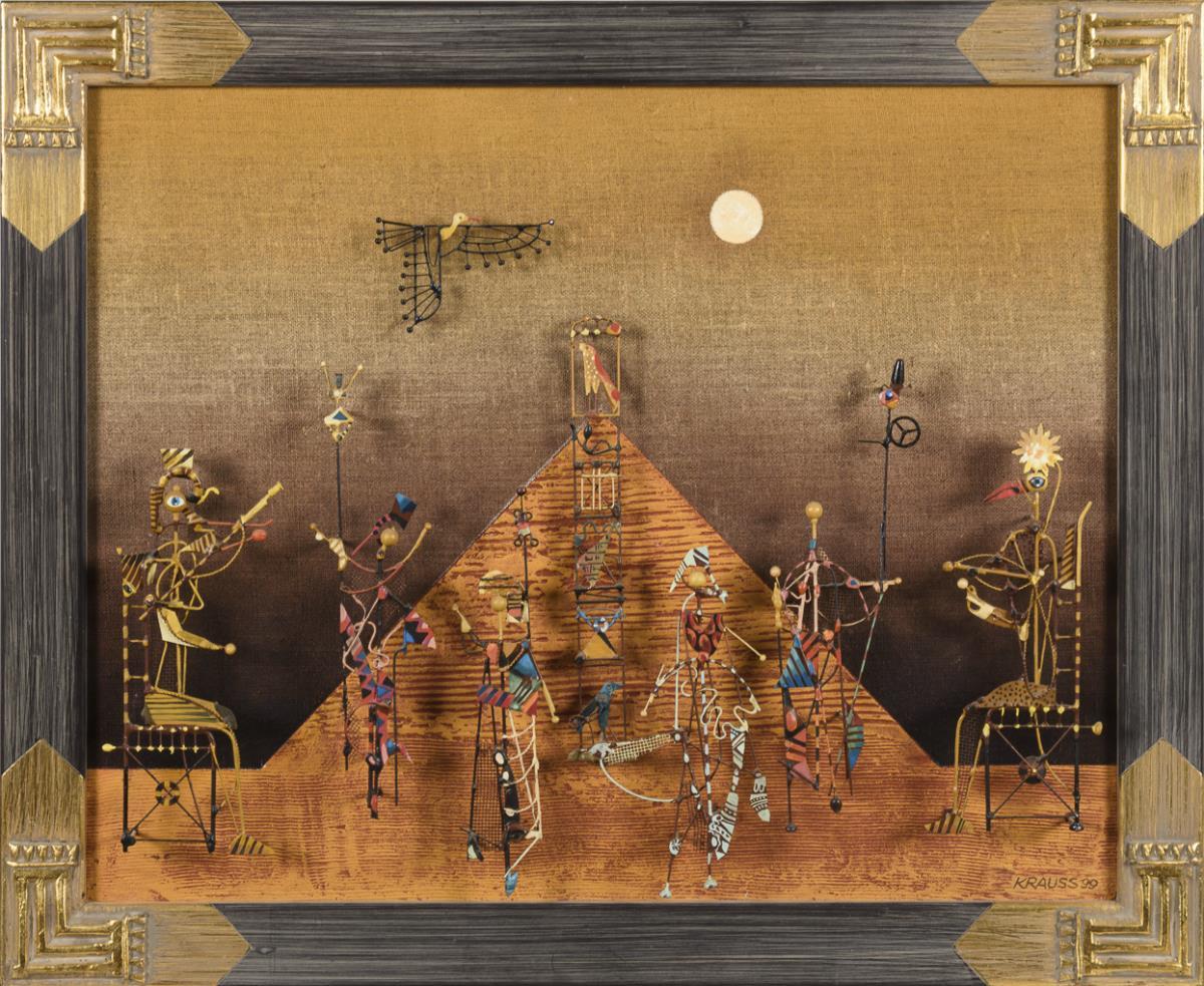 Mischtechnik mit figürlichen Metallapplikationen. Rechts unten signiert, verso betitelt. Datiert: (19)99.