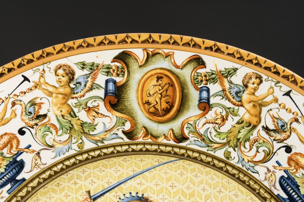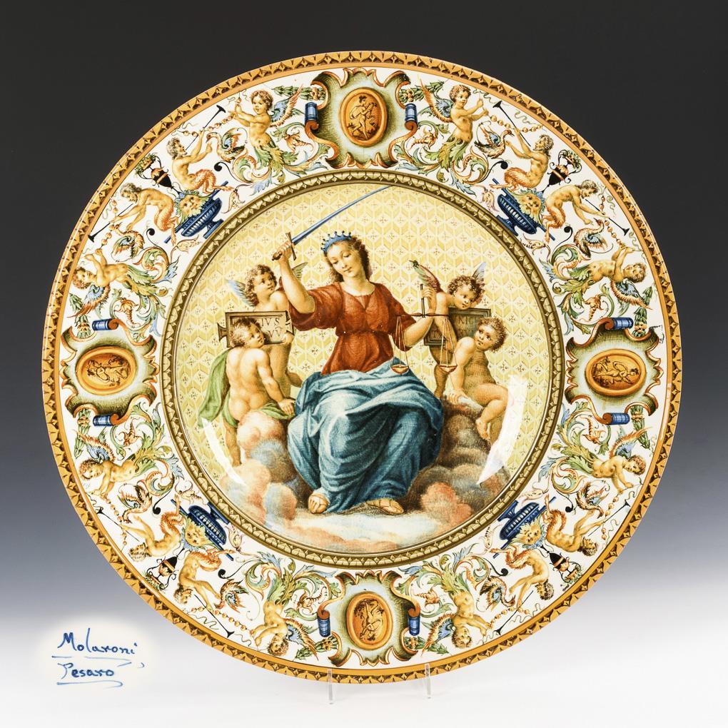 Außerordentlich großer Prunkteller im Stil der italienischen Renaissance. Ceramiche Artistiche Molaroni.