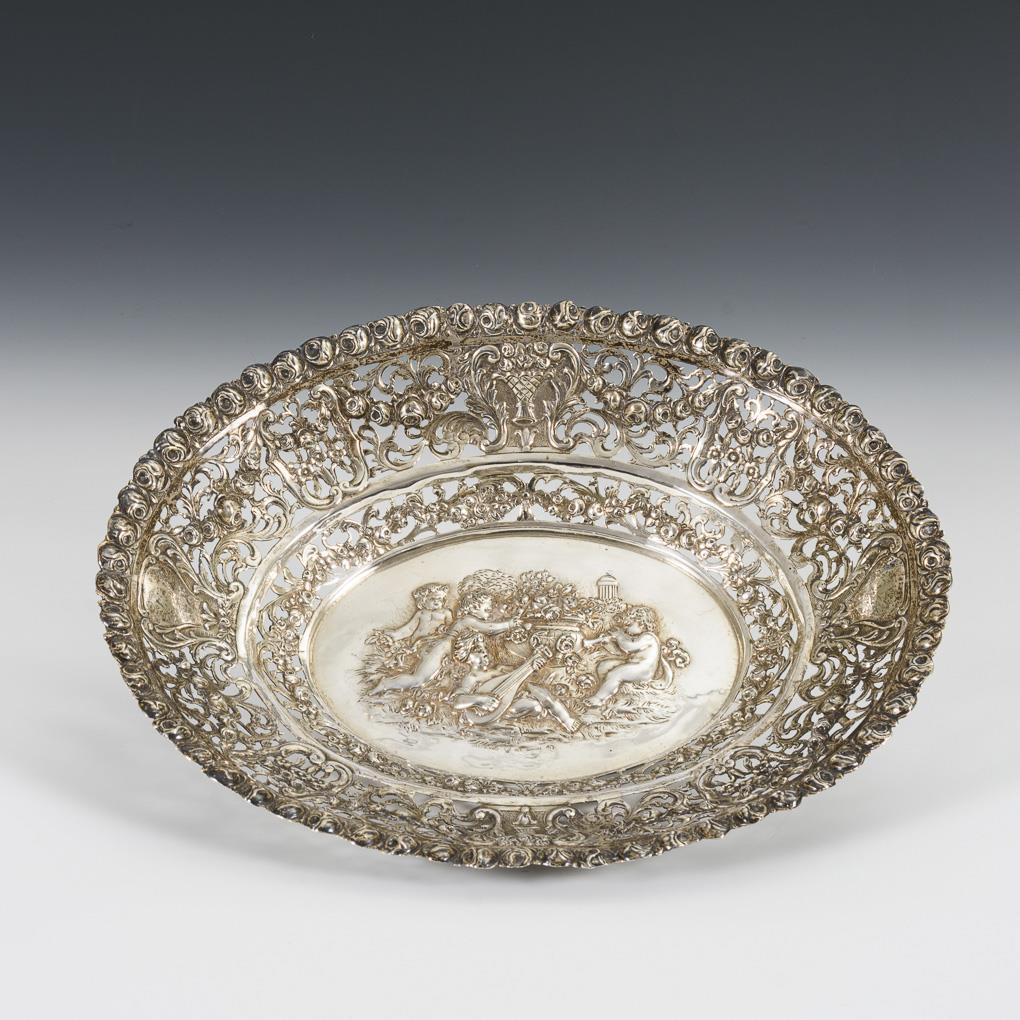 Ovale Silberschale mit Putten. J. D. Schleissner & Söhne.