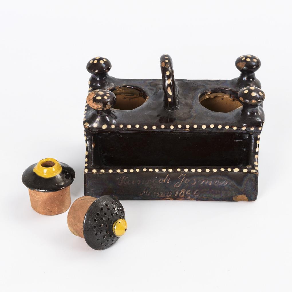 Schreibzeug "Heinrich Gosmann Anno 1896". Werrakeramik.