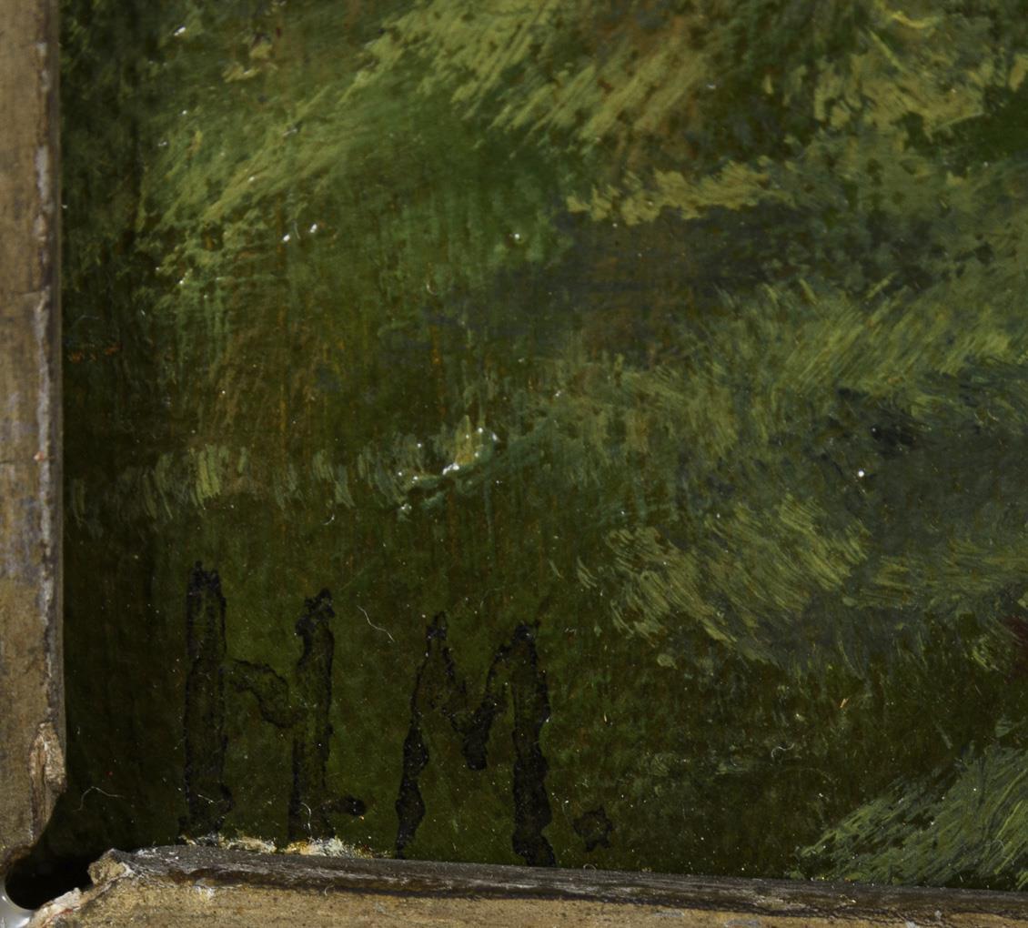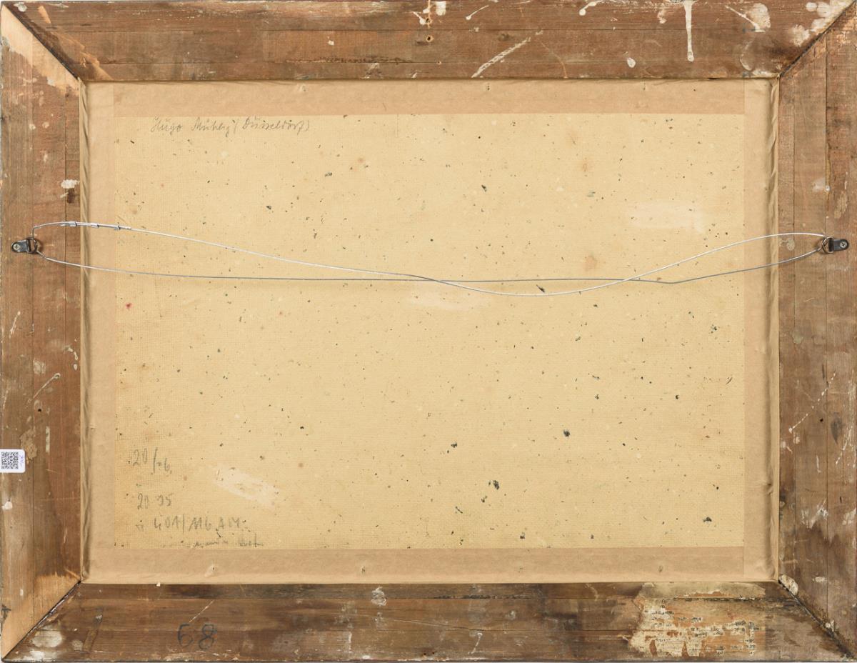 Öl/Malkarton. Links unten monogrammiert, Zusatz Düsseldorf, verso als "Hugo Mühlig" bezeichnet.