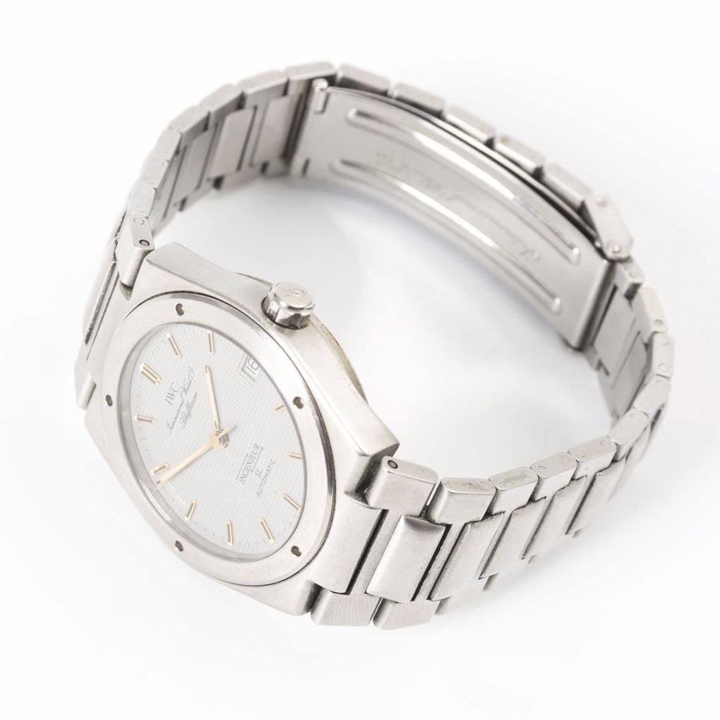 Automatikwerk mit Stellkrone. Läuft. Grau kariertes Zifferblatt mit fluoreszierenden Stundenmarkierungen und Stabzeigern, Minutenkranz, Zentralsekunde, Datum mit Schnellschaltung. ManufacturyMarkDial: IWC International Watch Co. Schaffhausen, Ingenieur SL Automatic.