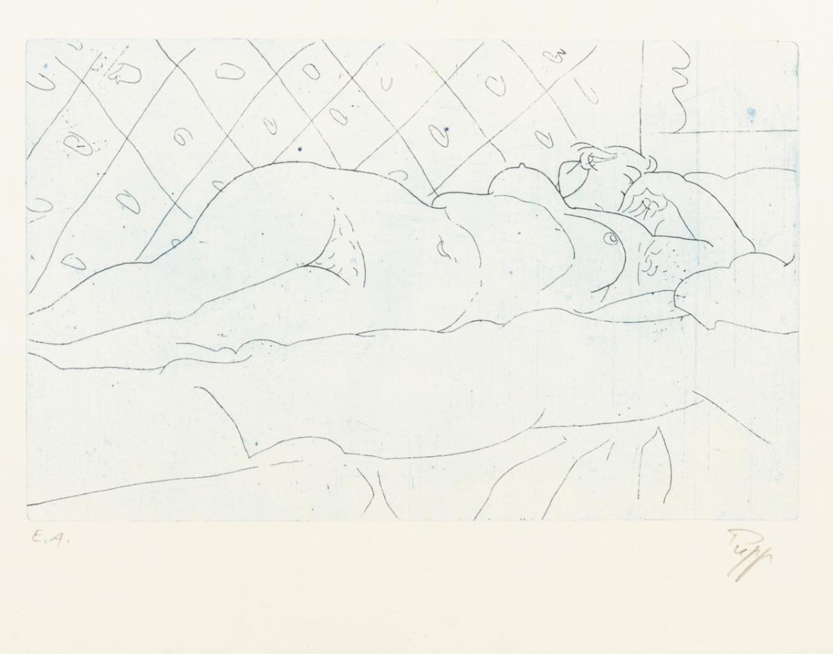Radierung in Blau. Bleistiftsignatur. Künstlerexemplar "e.a.".