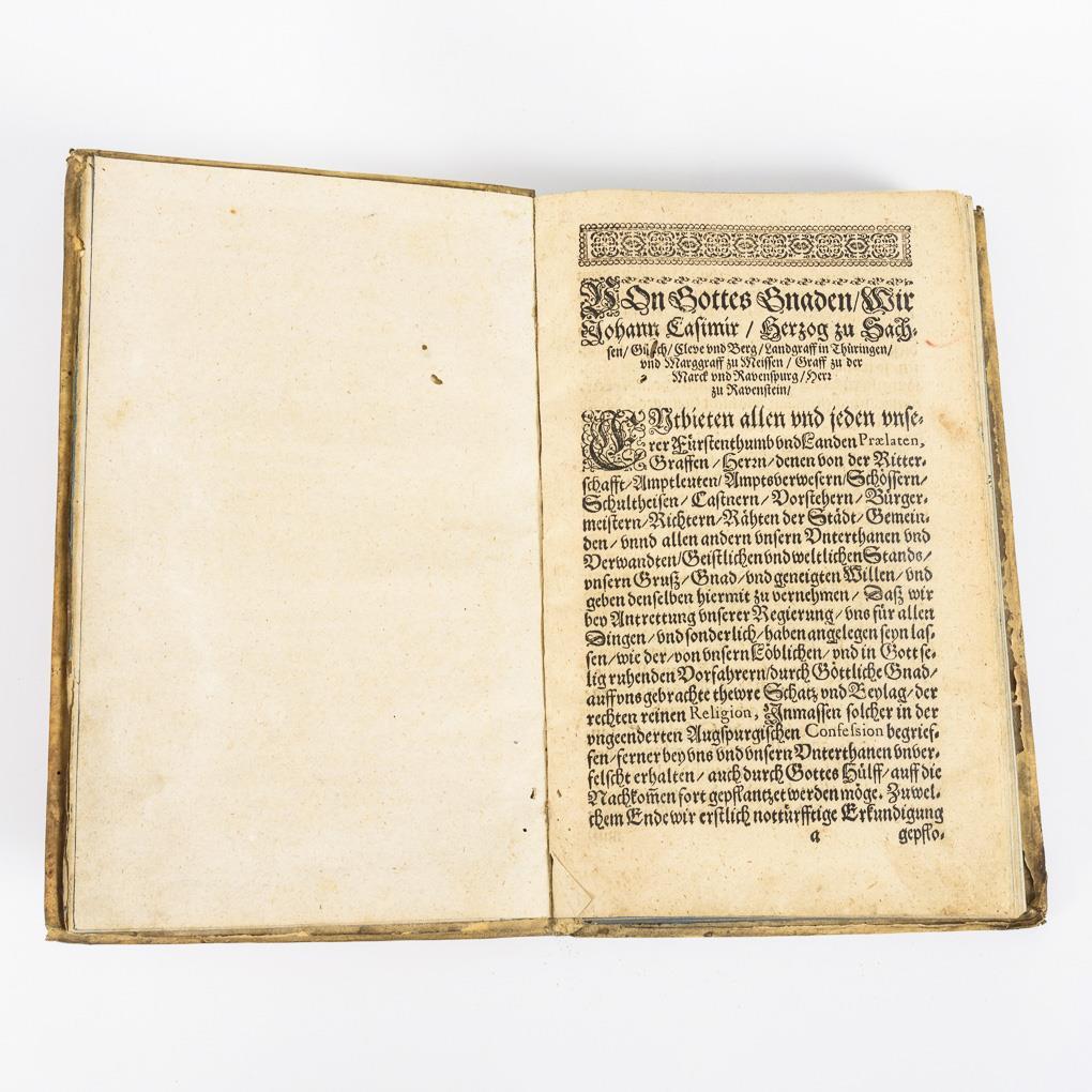 ("Ordnung Wie es in deß ... Fürsten und Herrn Herrn Johann Casimiri Herzogen zu Sachsen, Jülich, Cleve, und Berg, ... in den Kirchen, mit Lehr, Ceremonien, Visitationen und was solchen mehr anhängig, Dann im Fürstlichen Consistorio, mit denen verbotenen gradibus in Ehesachen und sonsten, auch im Fürstlichen Gymnasio, so wol Land: und Particular Schulen, gehalten werden solle").