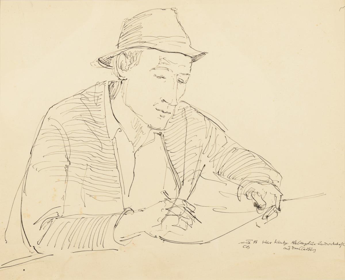 Tuschzeichnung. Tuschmonogramm. Datiert "11.IX. [19]58".